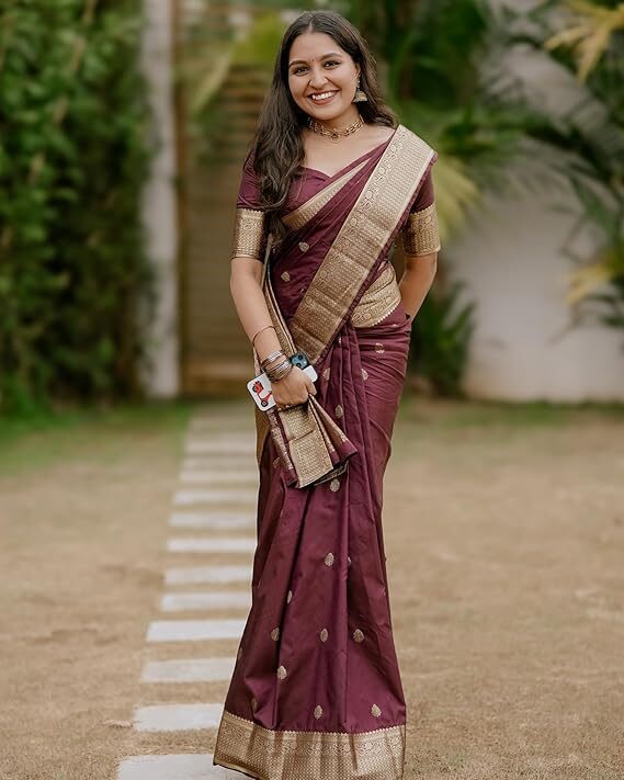 Moreover, the practicality of the Silk Saree makes it an ideal choice for the busy, modern woman. The synthetic blend results in a lightweight fabric that is highly durable and resistant to wrinkling. In contrast to pure silk, which demands dry cleaning and careful storage, the Silk Saree is often easier to care for, requiring less fuss after a long day of festivities. You appreciate the convenience of wearing a beautiful saree that is both comfortable and low-maintenance. Furthermore, the fabric’s resilience ensures the saree withstands repeated wear, proving its worth as a smart fashion investment.