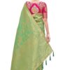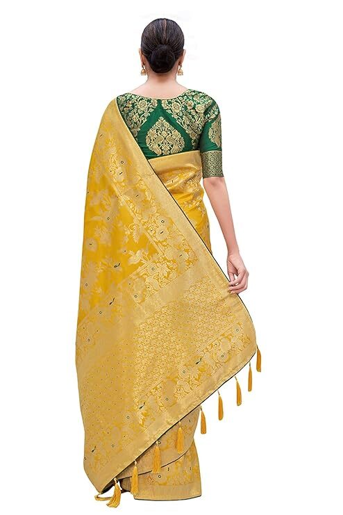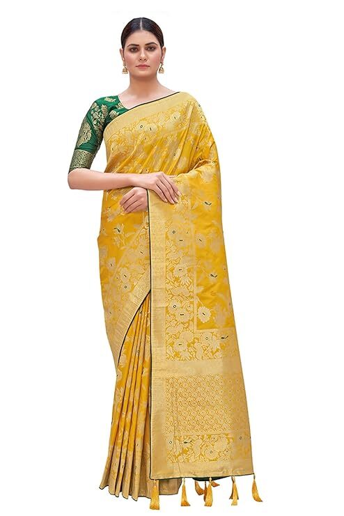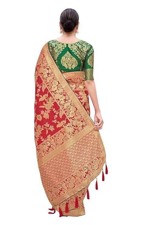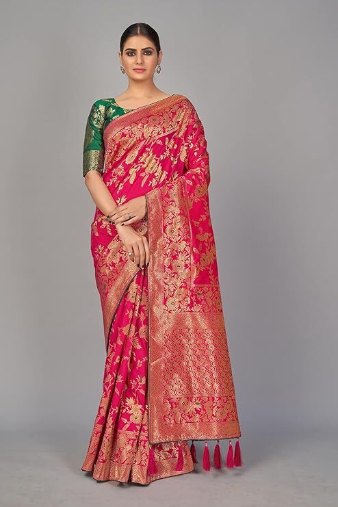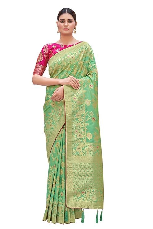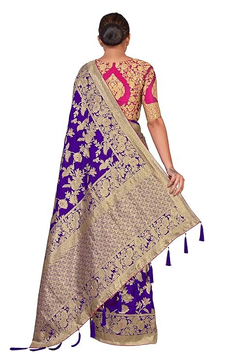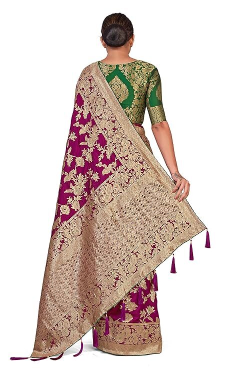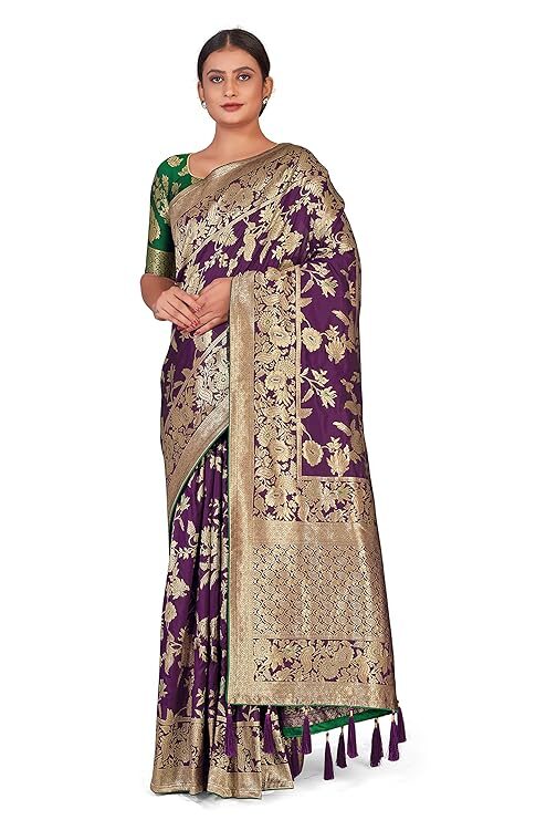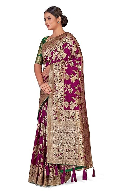 Finally, the attention to detail is evident in the finishing touches. A high-quality Banarasi Silk Blend Saree typically features richly Zari woven borders and a matching pallu. Many even include playful additions like tussles attached to the pallu, enhancing the festive charm and movement of the drape. Crucially, the package usually includes a complementary Jacquard woven blouse piece. You can customize the blouse to your desired fit and style, creating a cohesive and personalized ensemble. Ultimately, the Banarasi Silk Blend Saree provides timeless elegance and unmatched value, making it a foundation piece in every woman’s ethnic collection.