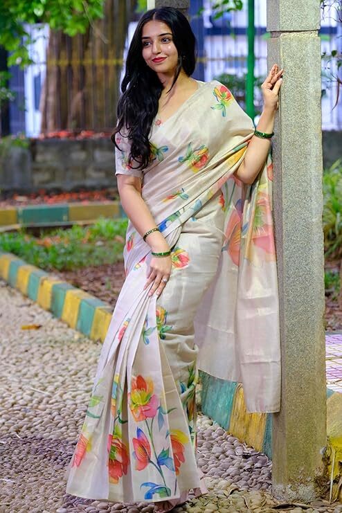 Finally, the Chanderi Silk Saree offers exceptional versatility. Because of its lightweight nature and comfortable feel, it seamlessly transitions between casual daytime wear and formal evening functions. You can choose to wear a light pastel shade for a summer brunch or select a deep jewel tone with rich Zari work for a festive dinner. Crucially, the package often includes an unstitched blouse piece, allowing the woman to tailor the blouse to a contemporary design that complements the sheer saree. In summary, the delicate blend of sheer silk, elegant floral printed patterns, and comfortable drape ensures the Chanderi Silk Saree empowers the wearer with quiet confidence and timeless charm.