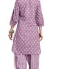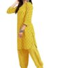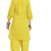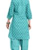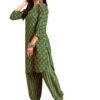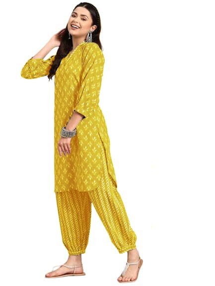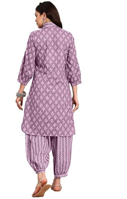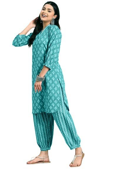 This exquisite cotton kurti set designers crafted it from a cotton blend material and styled it with an Afghani palazzo for a modern look. Its pant size is 3/4 knee length. This exquisite cotton kurti set has a printed design in which we have given a flower look.