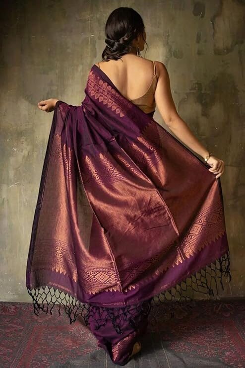 The versatility of the Linen Silk Saree makes it a favorite among fashion enthusiasts. For example, you can pair a solid-toned Kanjivaram soft cotton linen silk saree online drape with a contemporary crop top for a fusion look. Alternatively, wearing it with the provided matching blouse piece and traditional temple jewelry creates a timeless ensemble perfect for a wedding reception.