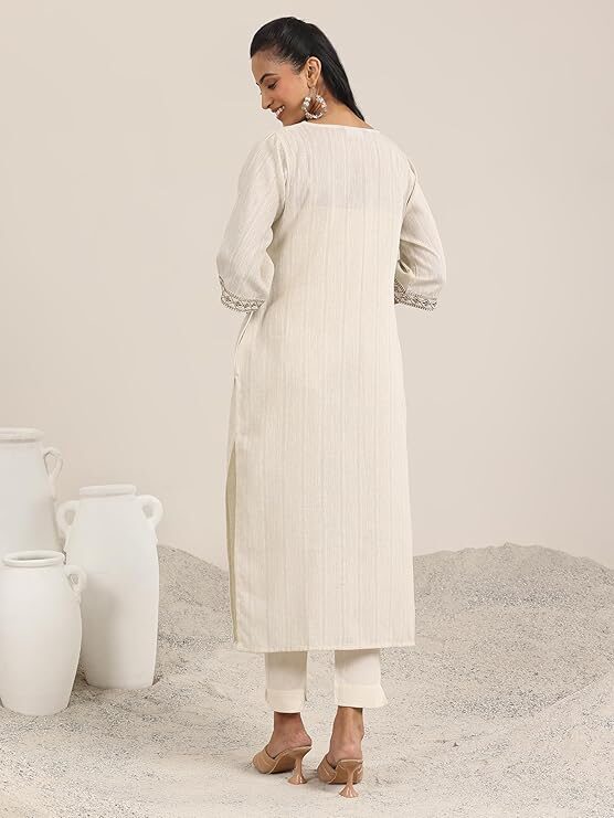 Fabric choice dictates comfort, and that’s where the magic of the cotton blend truly shines. By combining the breathable softness of pure cotton with the resilience of a synthetic fibre, the Minimalist Off-White Tunic delivers year-round wearability. You experience the cooling touch of cotton against your skin, perfect for warm summer days, while benefiting from the blend’s superior wrinkle-resistance. You spend less time ironing and more time confidently tackling your day. This fabric composition ensures your kurta maintains its sharp, straight silhouette through a busy schedule, making it an ideal piece for working women and active individuals.